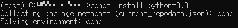 test env 가 활성화 된 상태에서 python 을 install 했다. 버전을 입력하면 해당 버전을 다운 받을 수 있다.