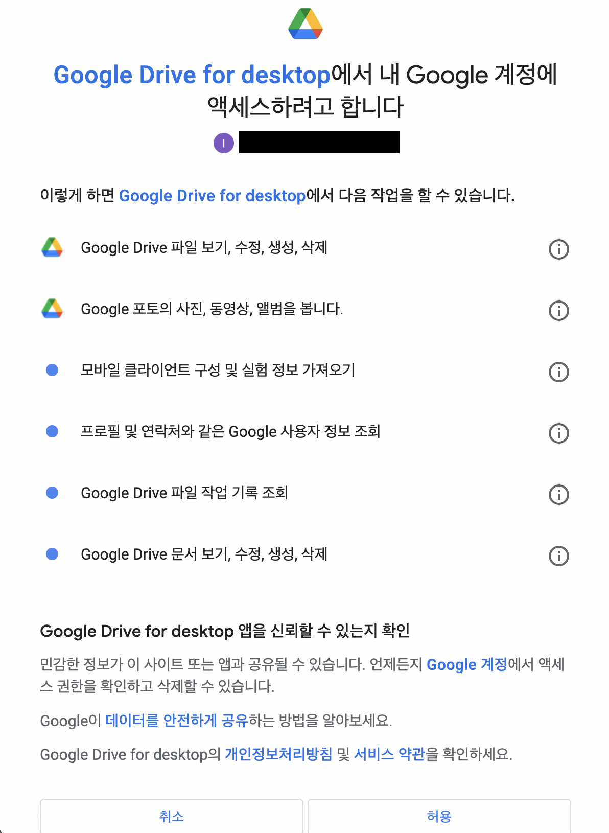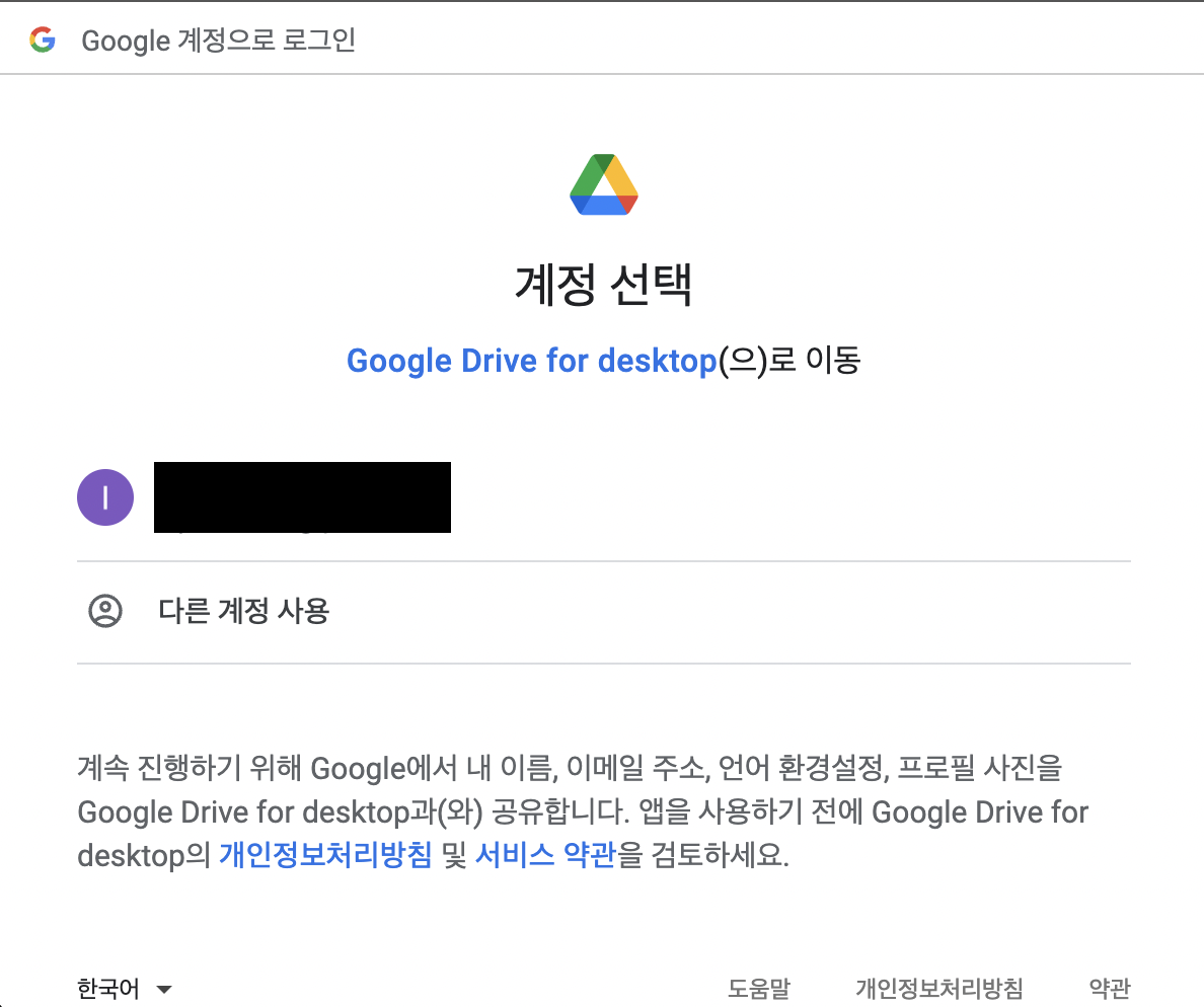 선택된 계정의 drive와 연결되는 것이기 때문에 사용할 계정을 눌러줘야 한다.