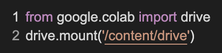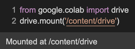 이제 우리는 아까 입력한 코드 밑에 'Mounted at /content/drive'라고 뜨는 것을 확인 할 수 있다.